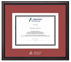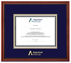Framing Success has a catalog of customized frames for AI members to display their certificates. All designs feature single mats stamped with the Appraisal Institute logo in silver foil. AI members receive 20% off year-round.